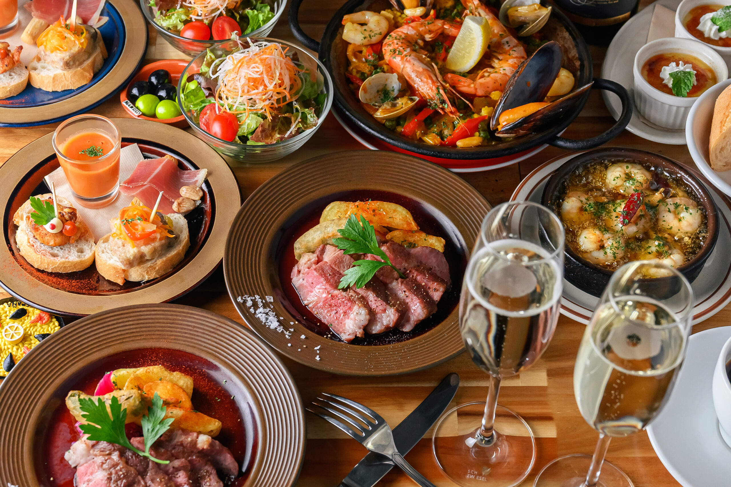そのほか、旬の食材を使った季節のアヒージョや、スペインバルの定番タパスであるスパニッシュオムレツなどもご用意しています。